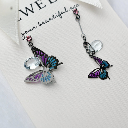 🩵海藍寶✨黑蝴蝶耳環 - 沉著、勇敢、幸福
