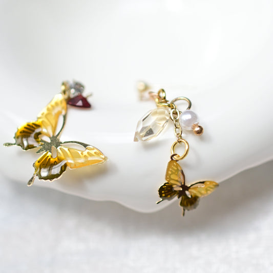 💛黃水晶+紅石榴石❤️黃蝴蝶耳環🔥熱銷🔥