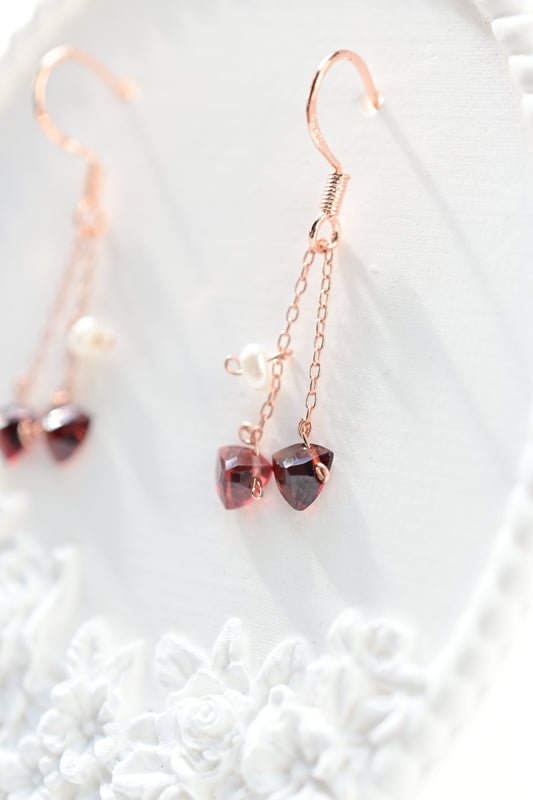 🍒石榴石✨手工水晶耳環-真愛、友情、毅力