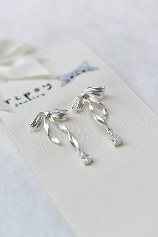 🩶銀色蝴蝶結絲帶耳環✨S925銀針