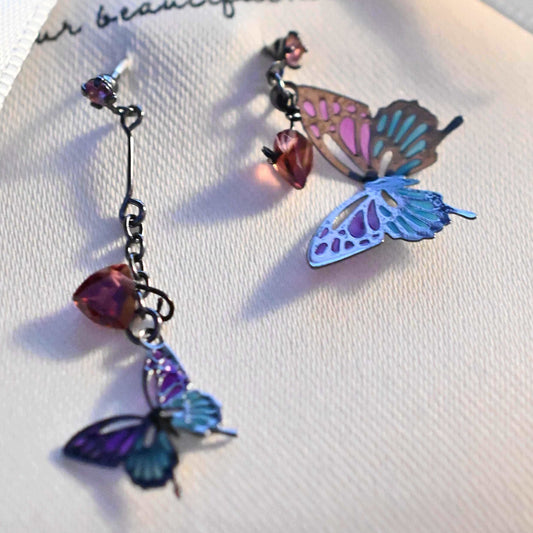 💖石榴石✨黑蝴蝶耳環-真愛、友情、毅力